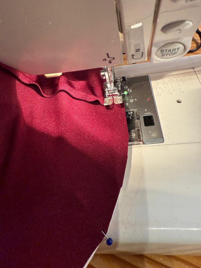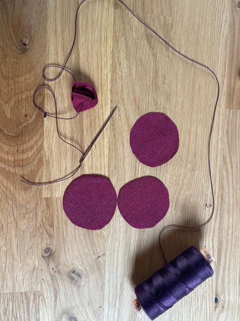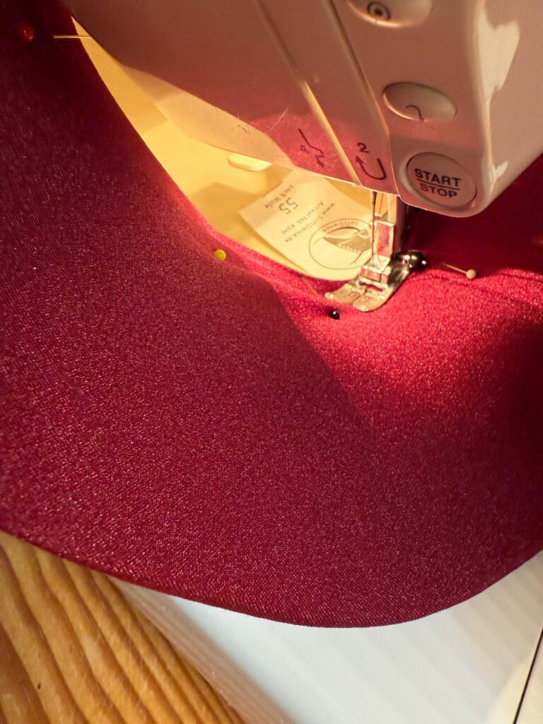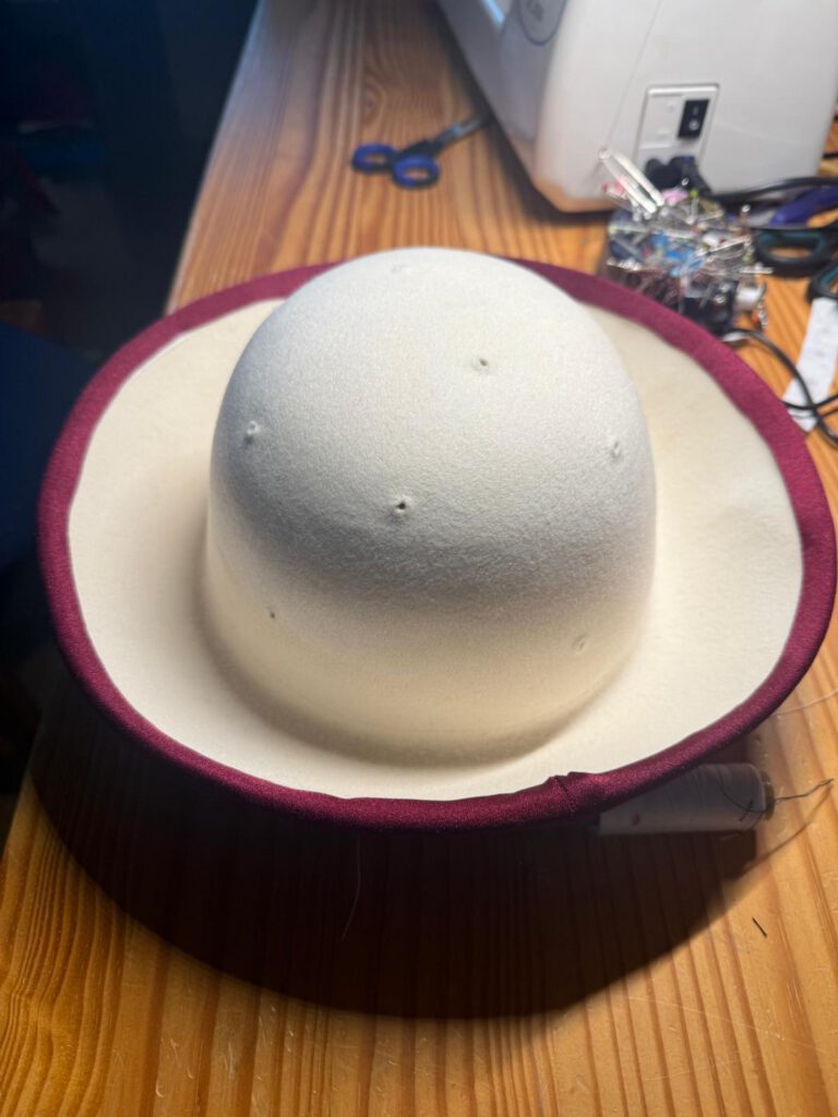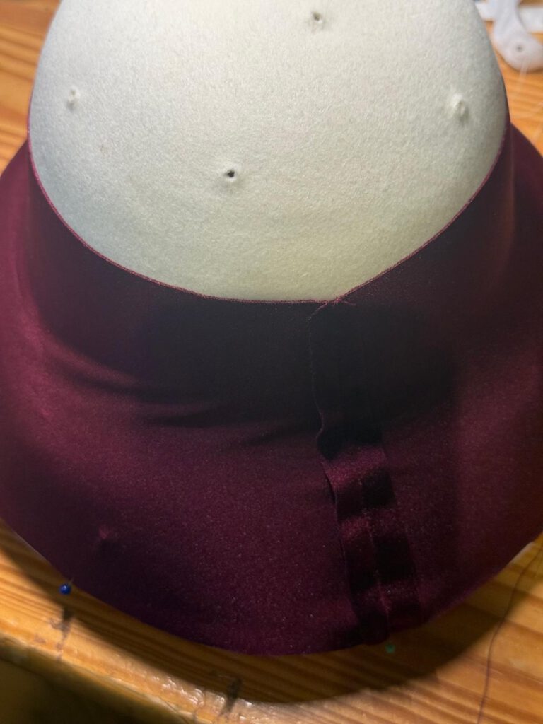 5. Stoff zusammennähen, der für die entsprechende Größe des Hutrohlings zugeschnitten wurde